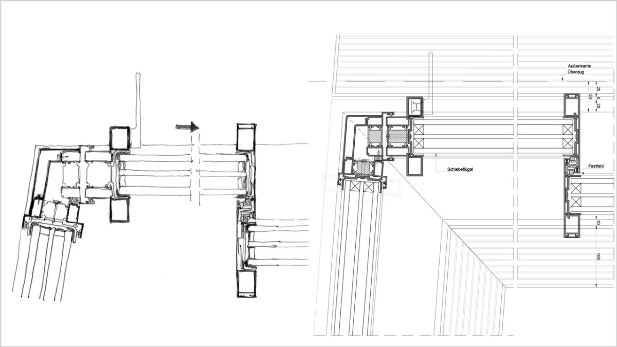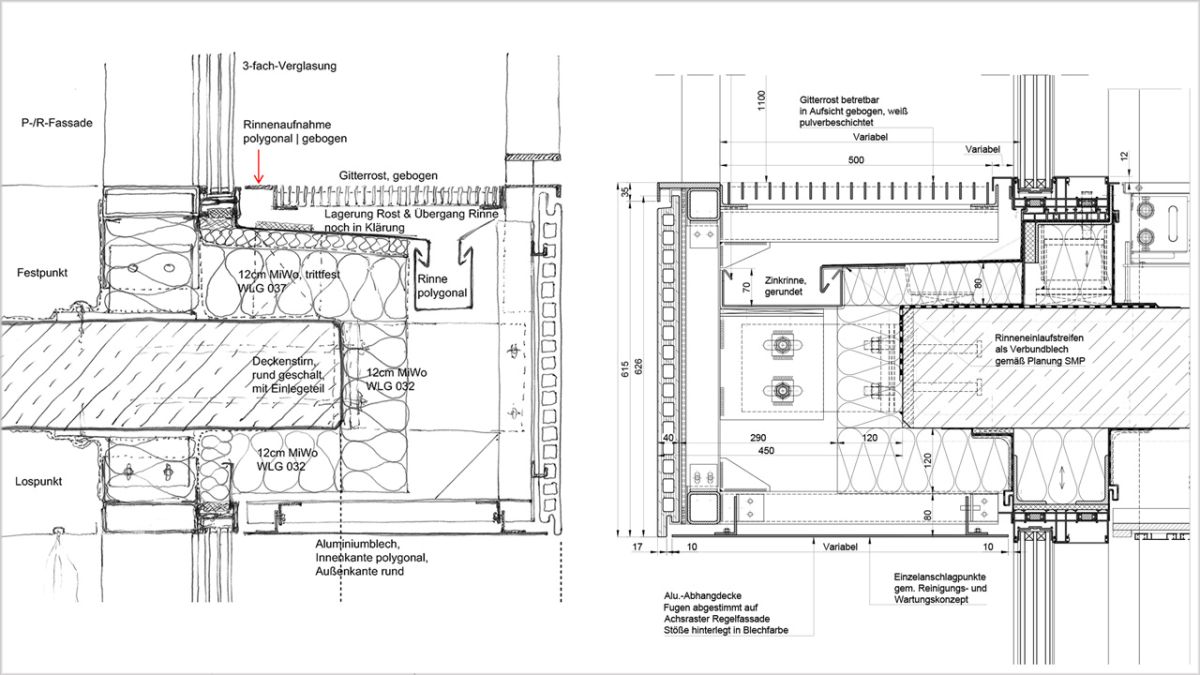 Bei der Fassadenplanung galt unser Augenmerk von Beginn an der Schnittstelle zwischen Rohbau und Fassade. Die Leitdetailplanung dieser Fassade war der entscheidende Faktor.