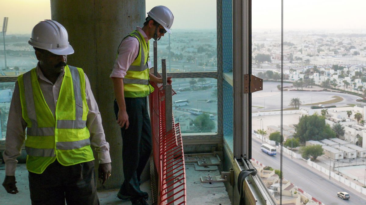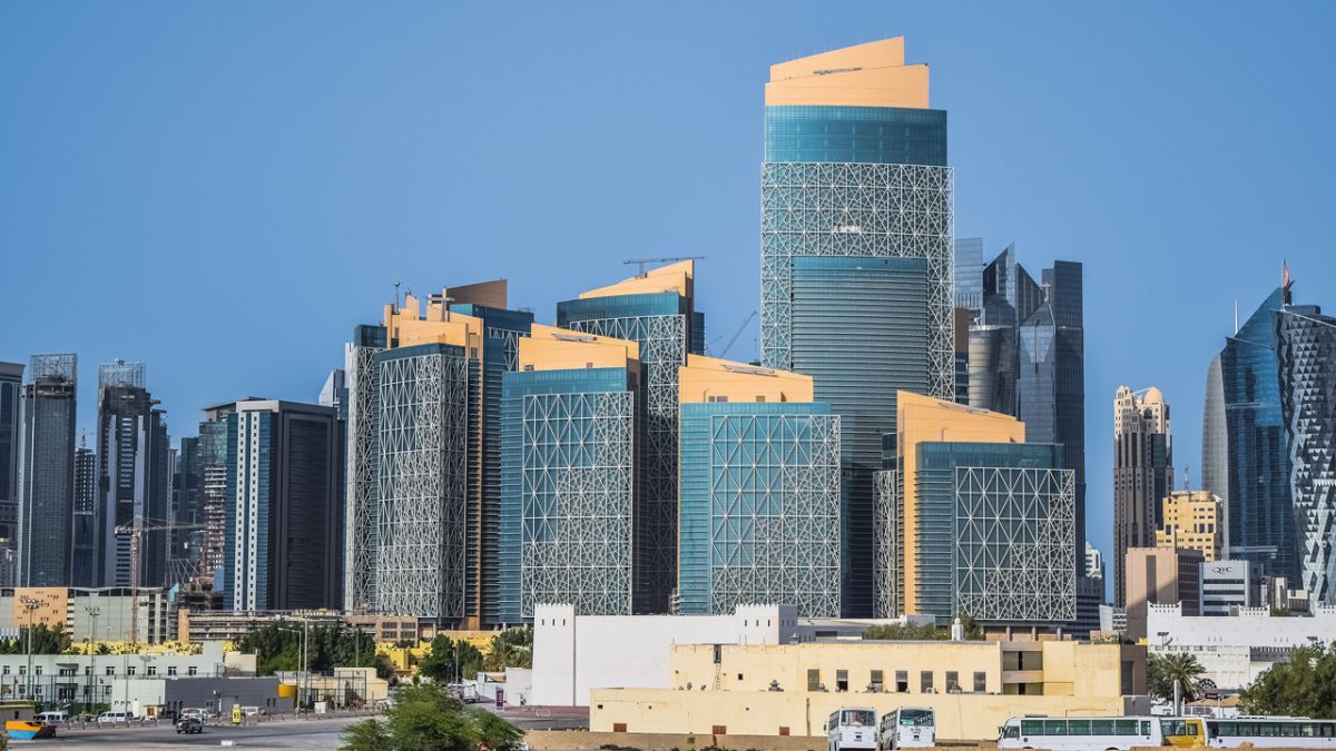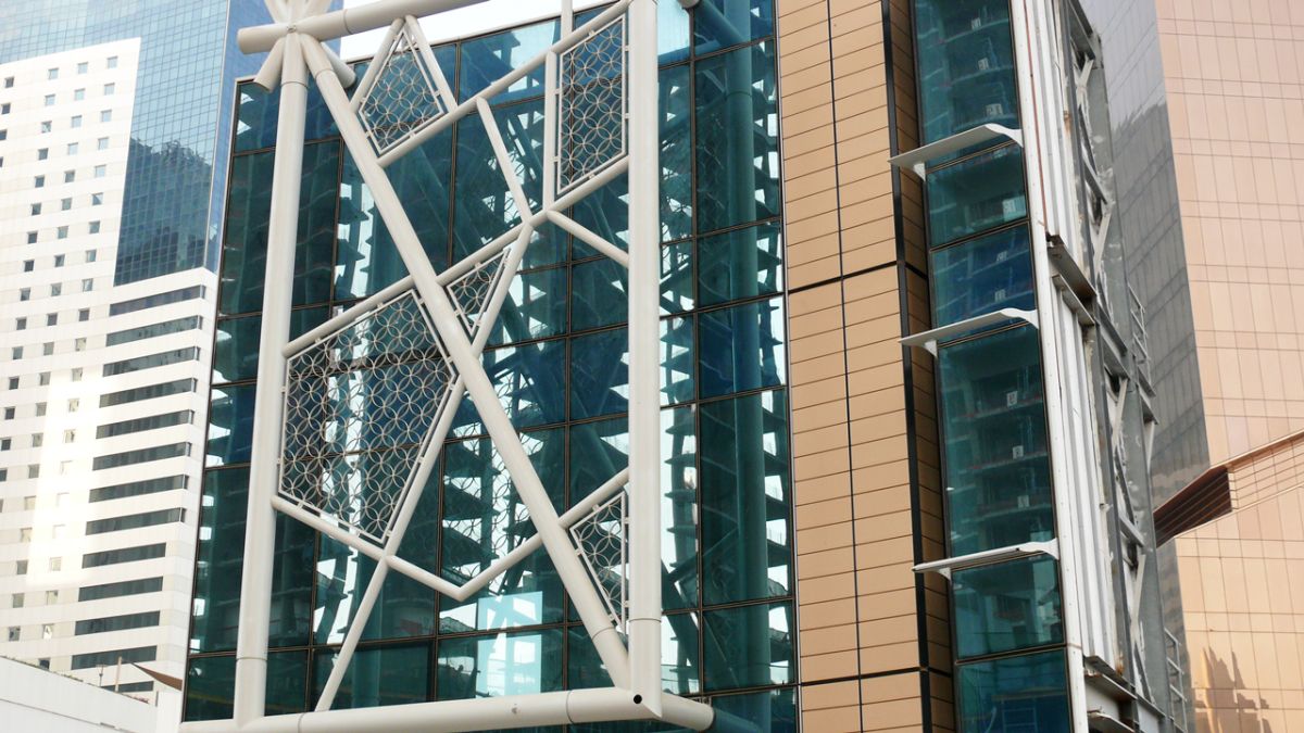 Großformatige Metallblenden, deren geometrisches Muster an die traditionellen Sonnenschutzgitter im arabischen Raum, die Maschrabiyya, erinnern: Das ist das Kennzeichen des Qatar Petroleum District, einem 10 Büro- und Hoteltürme umfassenden Komplex in Katars Hauptstadt. Die Türme mit Höhen zwischen 70 und 150 Metern weisen eine Fassadenfläche von insgesamt rund 380.000 Quadratmetern auf.