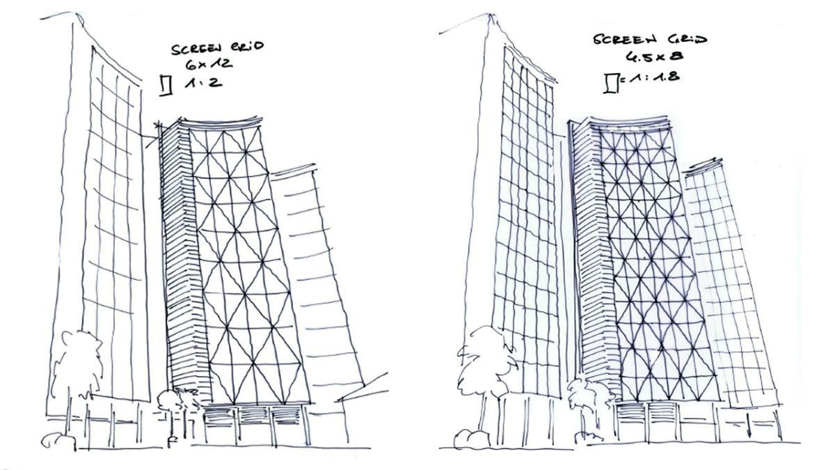 Vor allem konzentrierten sich unsere Fassadeningenieure auf die Geometrie des Konstruktionsrasters.