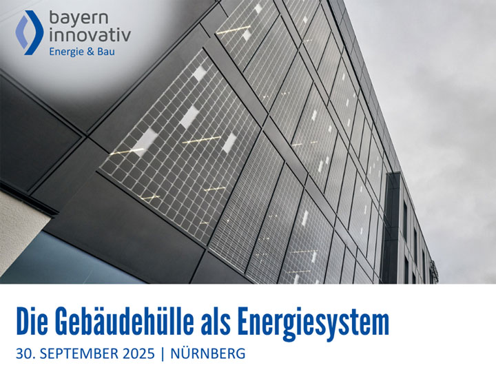 Cluster-Treff Die Gebäudehülle als EnergiesystemAm 30. September 2025 lädt Bayern Innovativ GmbH zum Cluster-Treff am Energie Campus Nürnberg ein. Im Mittelpunkt stehen gebäudeintegrierte Photovoltaik, smarte Fassadenlösungen und interdisziplinärer Austausch zwischen Architektur, Energietechnik und Forschung.