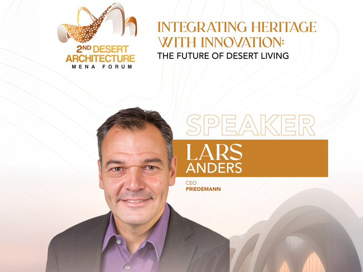 2nd Desert Architecture Mena ForumBeim kommenden Desert Architecture MENA Forum wird Lars Anders gemeinsam mit Jawaher Hassan Hamad Al Amir (DEWA) und Mamali Mirzaei (U+A) in der Panel-Diskussion „Future Facades: Balancing Aesthetics, Performance & Climate Resilience“ sprechen.